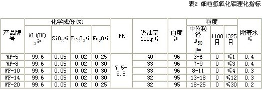 注:1、Al2O3含量為100%減去表1所列雜質和灼減的實際含量;